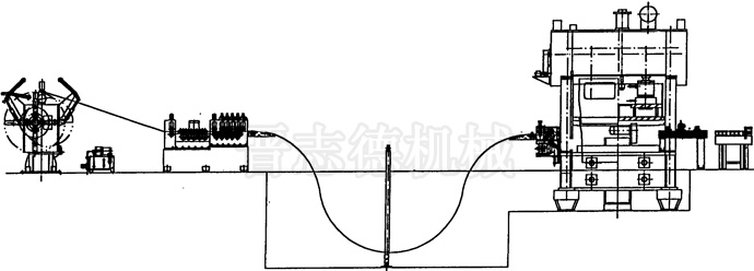 為了解決這一生產(chǎn)難題,晉志德機械專門為鋼帶沖壓生產(chǎn)研發(fā)了一種自動化沖壓送料生產(chǎn)線,此生產(chǎn)線由:雙頭材料架-整平機-NC送料機-沖床-拋料裝置組成,整條生產(chǎn)線的動作均由PLC控制器運算完成,PLC控制器分別與雙頭材料架、整平機、NC送料機、沖床、拋料機電連接。通過數(shù)控化精確控制實現(xiàn)高速、高精度、大步距、連續(xù)沖壓自動化生產(chǎn)。